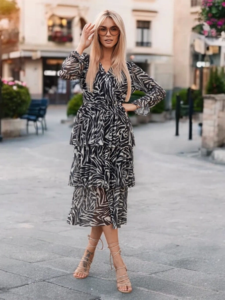 Krótka sukienka z falbanką i wiązanym dekoltem Olivia
