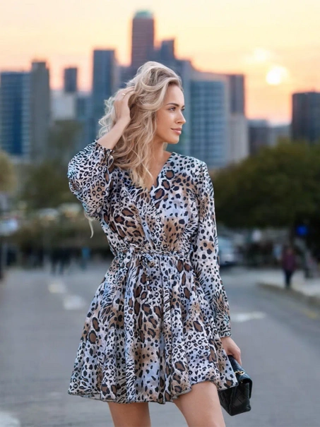 Krótka sukienka z falbanką i wiązanym dekoltem Olivia