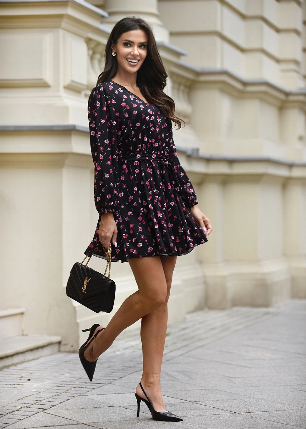 Krótka sukienka z falbanką i wiązanym dekoltem Olivia