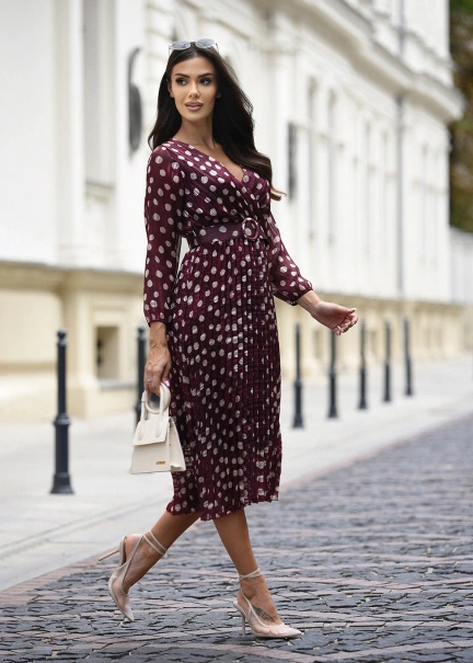 • Ta urocza sukienka midi w kwiaty to kwintesencja kobiecości i elegancji. Prezentuje się wyjątkowo dzięki delikatnemu materiałowi ozdobionemu żywym wzorem kwiatowym. Dekolt w serek pięknie podkreśla linię szyi i dekolt, zapewniając subtelną nutę zmysłowośc