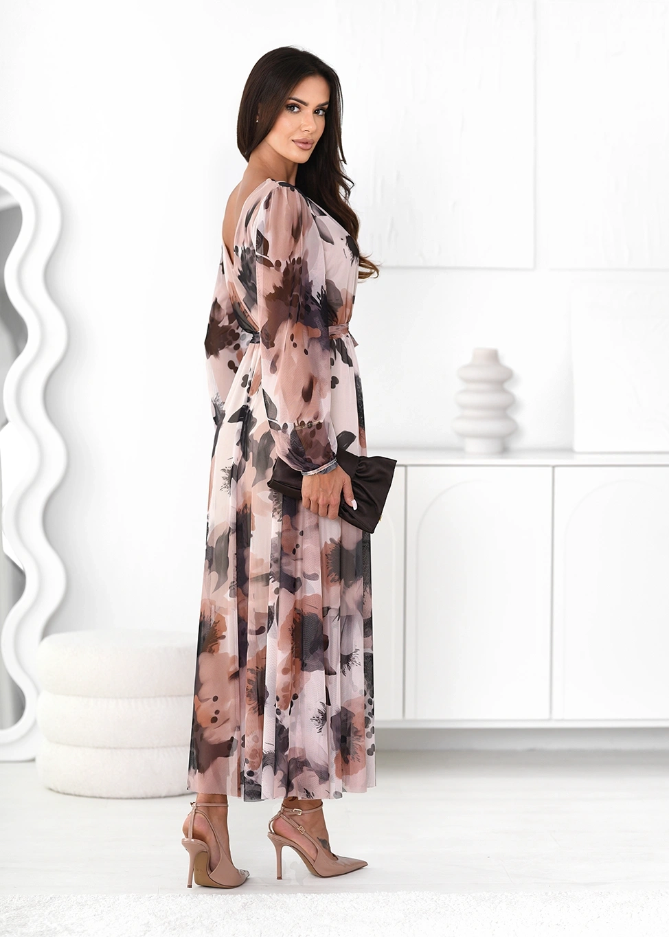 • Ta urocza sukienka midi w kwiaty to kwintesencja kobiecości i elegancji. Prezentuje się wyjątkowo dzięki delikatnemu materiałowi ozdobionemu żywym wzorem kwiatowym. Dekolt w serek pięknie podkreśla linię szyi i dekolt, zapewniając subtelną nutę zmysłowośc