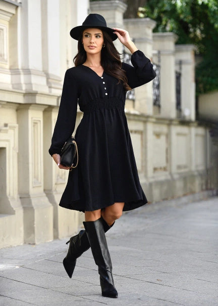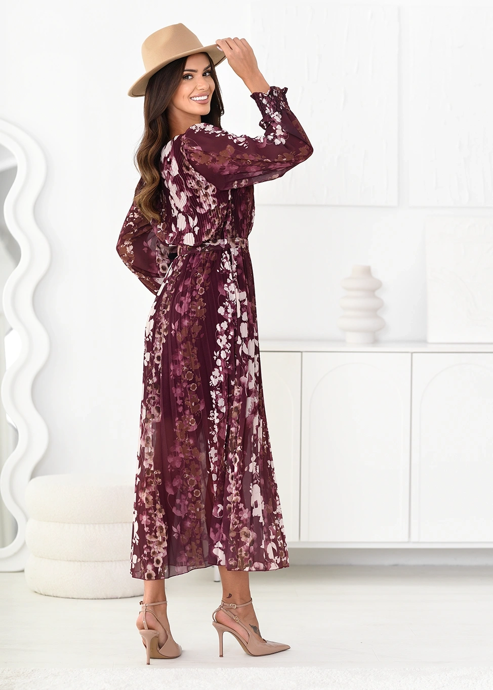 • Ta urocza sukienka midi w kwiaty to kwintesencja kobiecości i elegancji. Prezentuje się wyjątkowo dzięki delikatnemu materiałowi ozdobionemu żywym wzorem kwiatowym. Dekolt w serek pięknie podkreśla linię szyi i dekolt, zapewniając subtelną nutę zmysłowośc