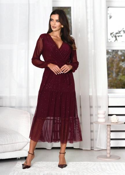 Długa połyskująca sukienka z transparentnym dołem Glow