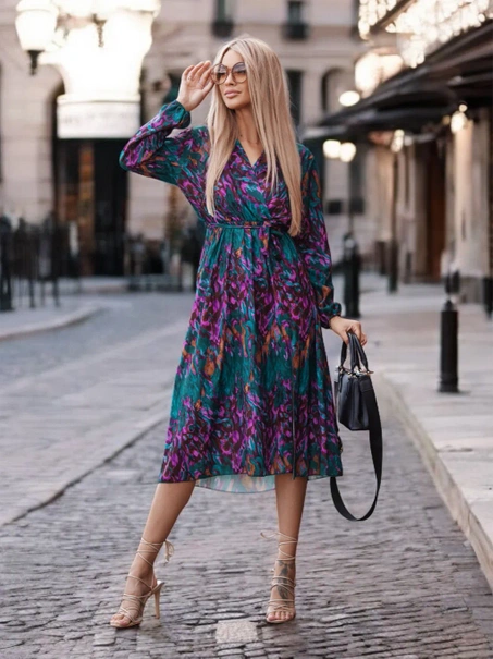Długa wzorzysta sukienka z wiązaniem na plecach Bona