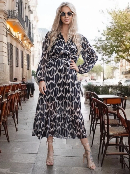 Trapezowa sukienka z bufiastymi rękawami Piera